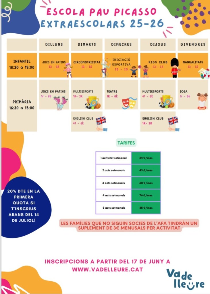 Activitats extraescolars Compartir: Share on X (S'obre en una nova finestra) X Comparteix al Facebook (S'obre en una nova finestra) Facebook M'agrada S'està carregant...